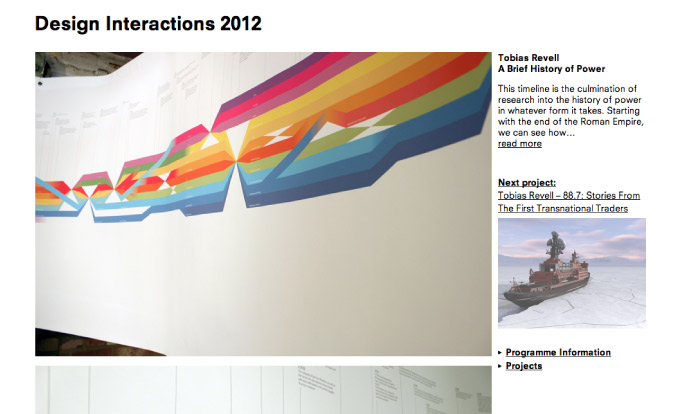 “The Design Interactions programme explores new roles, contexts and approaches for interaction design in relation to the social, cultural and ethical impact of existing and emerging technologies.