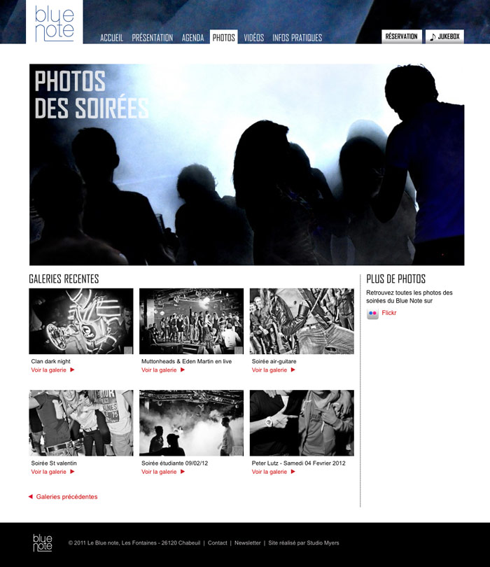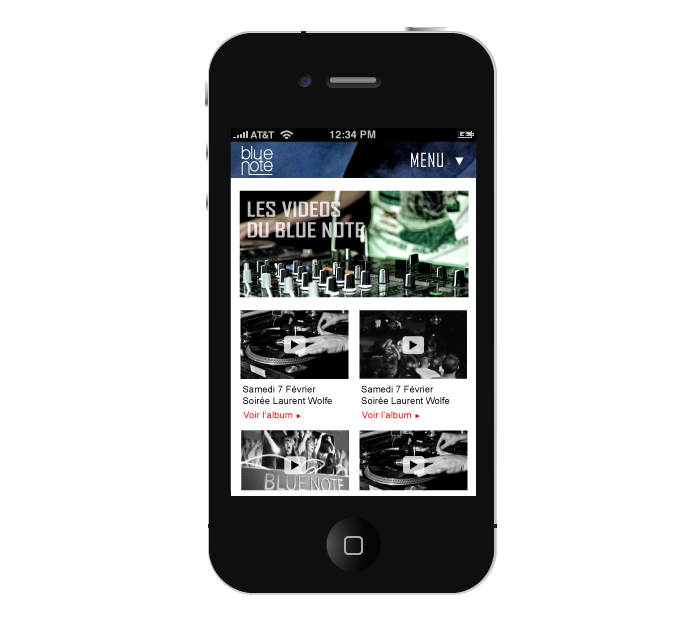 For the French nightclub "Le Blue Note" Studio Myers created a website and an optimised version for iphone. Allowing the user to see the latest photos, videos and check the upcoming parties.